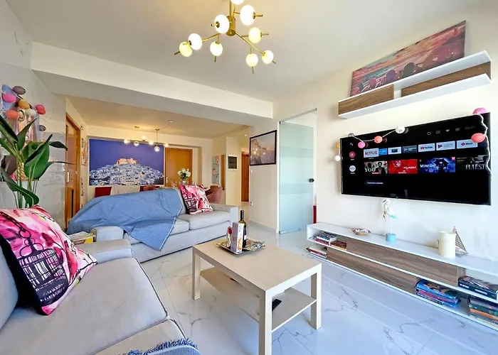 New Luxurious Apartment - 1 Minute From Elli Beach o powierzchni 98 m² dysponuje miejscem do pobytu dziennego, balkonem i miejscem do siedzenia z widokiem na miasto. Dla większej wygody gości w apartamencie znajduje się 1 łazienka. Do dyspozycji Gości są także prysznic.
